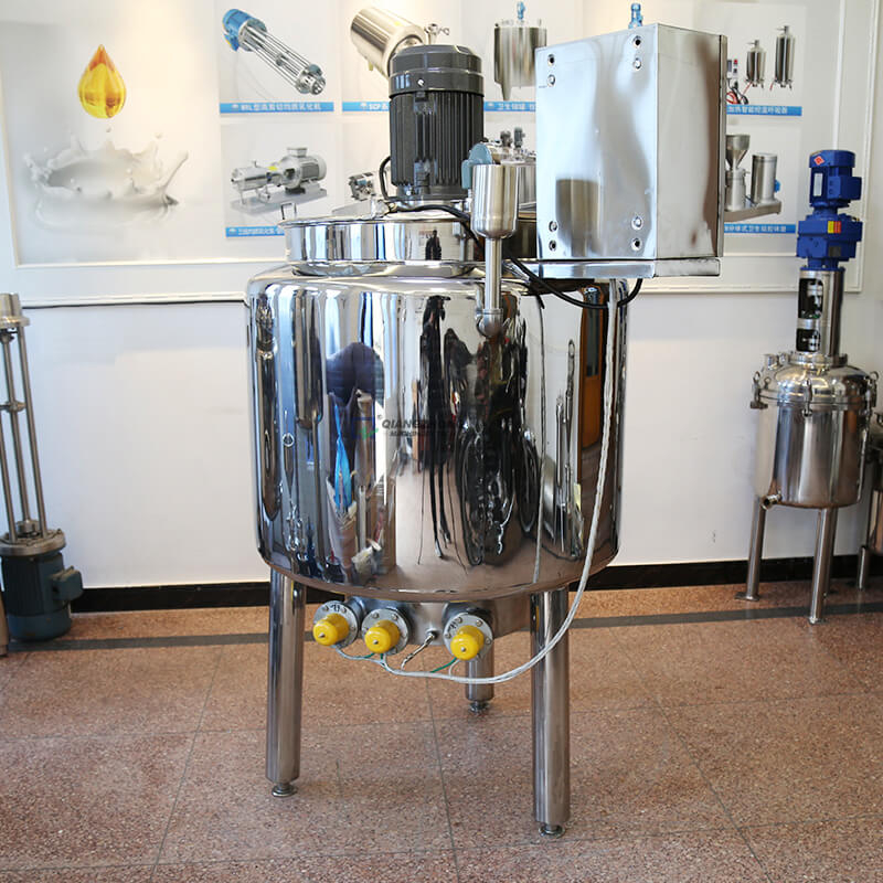 乳化罐是集混合、乳化、均质、溶解、粉碎等功能与一体的设备,目前国内食品、制药、化工等行业最先进的混合设备。乳化罐的作用是将一种或多种物料(水溶性固相、液相或胶状物等)溶于另一种液相,并使其水合成为相对稳定的乳化液。高速乳化头工作时将转子中心的物料高速抛向定子,通过定子的齿间隙,在转子和定子之间通过剪切、碰撞、粉碎而达到乳化的目的,广泛适用于油类、粉类、糖类等。原辅料的乳化混合,某些涂料、油漆乳化分散也使用乳化罐,尤其适用于某些难溶胶状类添加剂,如CMC、黄原胶等。
